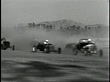 1930s B/W Hot rod cars racing around track / Corona Show Grounds Speedway, Corona, California, United States - stock video