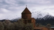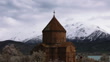 Armenian apostolic church surrounded by trees with snowy mountains in background - 4K stock video