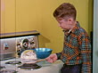 1955 boy cooking Jiffy Pop popcorn on stove / industrial - stock video
