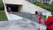 SUNRISE, FLORIDA - JUNE 10: A child poses with mascot Stanley C. Panther ahead of Game Four of the 2023 NHL Stanley Cup Final between the Florida Panthers and the Vegas Golden Knights on June 10, 2023 in Sunrise, Florida. (Footage by Bruce Bennett/Getty Images)