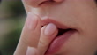 Close-up female lips chewing a sweet chocolate bar and licking fingers - 4K stock video