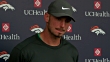 Denver Broncos rookie quarterback Paxton Lynch at press conference after practice
