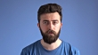 UHD video of facial expressions montage of adult man on blue background in multiple image form. The model is an adult man in his 20's. He is wearing a blue sweater. He is making faces for various emotions such as anger, happiness, sadness, smiling,shouting,sleeping,surprised.