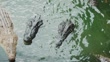 Feeding crocodiles with raw chicken carcasses - 4K stock video