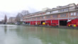 firefighters training in front of their barracks, near the canal du saint martin. Paris