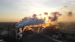 Aerial of smoke from the chimney of factory with beautiful sunlight in the morning