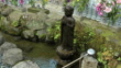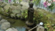 Hand of a woman pouring water on top of Jizo statue in Japan