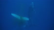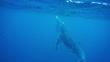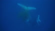 Humpback whale doing a number two (poo) while calf swims up and away, Tonga. 2x slow motion.