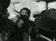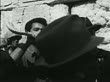 B/W 1967 man blowing shofar in crowd at Wailing Wall after Six Day War / Jerusalem / newsreel
