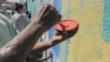 Man drawing heart on sunny wall mural - 4K stock video