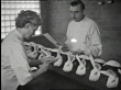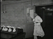 1945 MONTAGE Many New Zealand White Rabbits in box-like holder give injections by nurse / Terre Haute, Indiana, United States