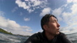 A middle-aged man is trying bodyboarding for the first time - 4K stock video