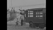 Title card: "News Flashes!" / row of planes at airport with propellers spinning / man carrying package of posters walks from truck towards plane / he hands packet of posters bearing NRA logo to pilot standing in cockpit / row of planes with propellers spinning / three planes taking off / two planes flying low overhead / squadron of planes flying overhead / people on ground watching / a Goodyear blimp overhead trailing banner that reads "NRA We Do Our Part" / Note: exact day not known