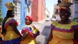 Portrait of palenqueras walking on the street in Cartagena, Colombia