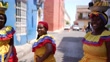 Portrait of palenqueras walking on the street in Cartagena, Colombia - 4K stock video