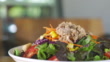 Video of tuna salad on plate dolly shot. 4K