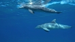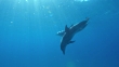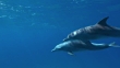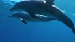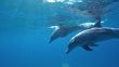Underwater CU PAN with Bottlenosed dolphin swimming close to camera just below surface - HD stock video