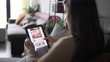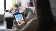 Unrecognizable woman ordering food from mobile app at home ,she using digital tablet and shopping food online.