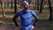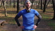 Young man breathing fresh air stretching arms in a park - 4K stock video